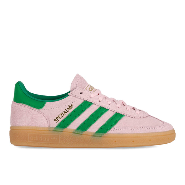 Der Handball Spezial W in Clear Pink/Green/Gold Metallic bringt Retro-Sport-Chic auf die Straße. Die Full-Suede-Konstruktion mit verstärkter Fersenkappe und abriebfester Gummisohle sorgt für klassischen Grip und Komfort. Das cleane Design und die feminine Farbgebung machen ihn zum perfekten Sneaker für Fans von Vintage-Silhouetten mit modernem Flair. JR7347