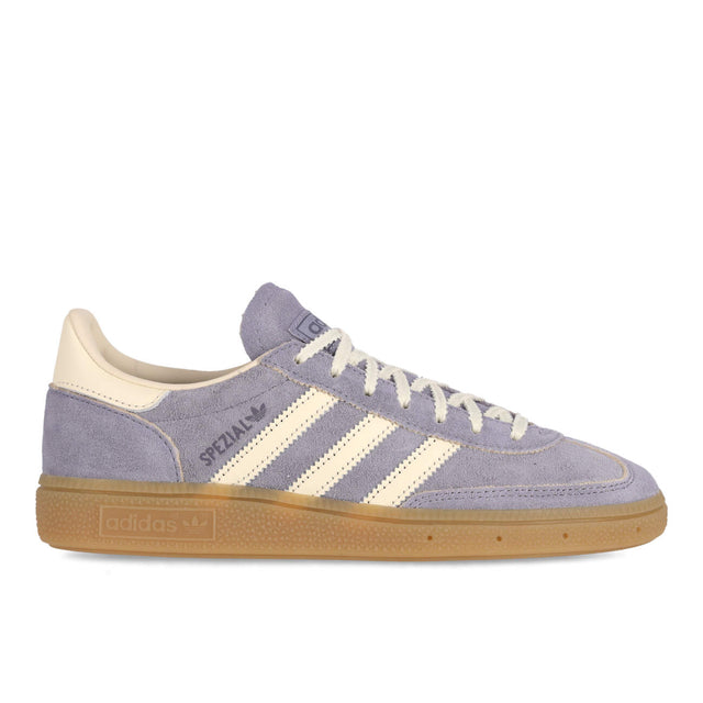 adidas Originals Handball Spezial W – Silver Violet/Cream White/Gum kombiniert edles Wildleder-Obermaterial mit weicher Innenausstattung und klassischer Gum-Sohle für stilvolle Dämpfung und Grip. Hergestellt aus vollnarbigem Nubukleder bietet er Premium-Qualität für Alltag und Indoor-Sessions. JR0849
