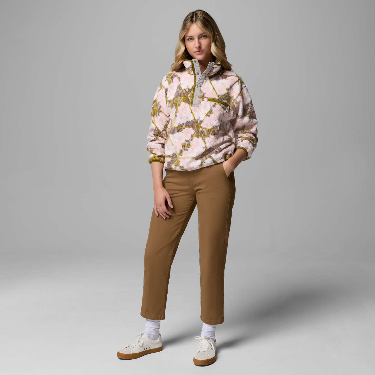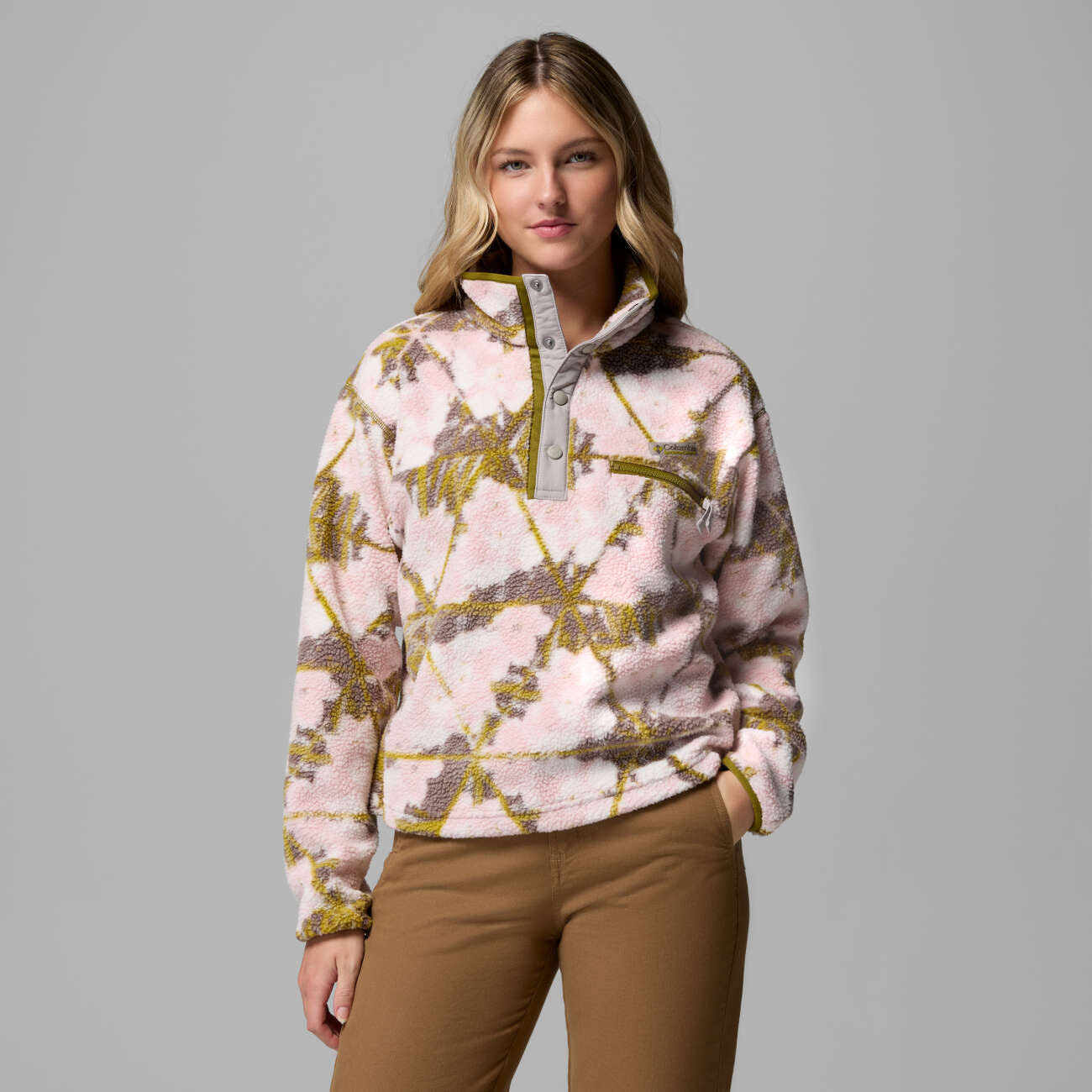 Das Columbia Helvetia™ II Printed Cropped Half Snap in pink agate-florascope bietet funktionale Wärme und trendige Print-Optik. Das leichte Polyester-Fleece sorgt für angenehmen Komfort im Alltag und bei Outdoor-Abenteuern. 2098501694