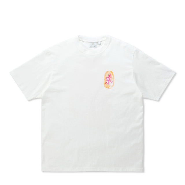 Das Thumbprint Tee in Weiß zeigt mit seinem minimalistischen Print eine kreative Seite der Gramicci-DNA. Aus weicher Baumwolle gefertigt, sitzt es bequem und eignet sich perfekt für Alltag und Freizeit. G5SU-T174-WHITE