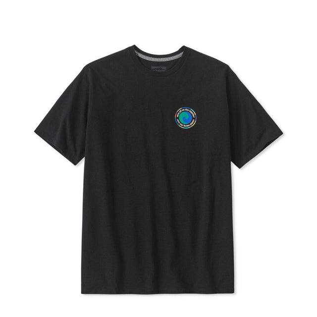 Das Patagonia Unity Fitz Responsibili-Tee in Schwarz kombiniert umweltfreundliche Materialien mit stilvollem Design. Hergestellt aus 100 % recyceltem Stoff, reduziert es die Abhängigkeit von neuen Rohmaterialien und unterstützt nachhaltige Praktiken. Der klassische Rundhalsausschnitt und die normale Passform sorgen für einen bequemen Sitz und vielseitige Kombinationsmöglichkeiten. Das auffällige Design zeigt eine stilisierte Erde mit der Botschaft "we're all on this together" und dem Kernziel von Patagonia, unseren Planeten zu schützen. Dieses T-Shirt ist nicht nur ein modisches Statement, sondern auch ein Beitrag zum Umweltschutz. 37768-INBK