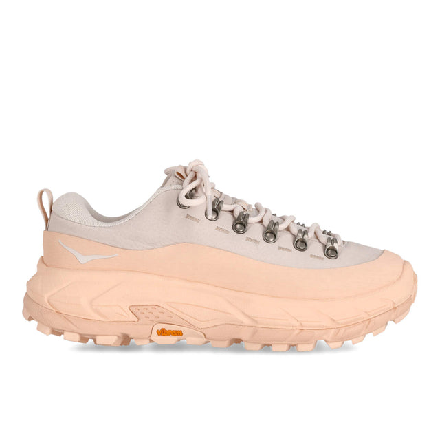 Der Hoka U Tor Summit in rose cream tangerine glow kombiniert hochwertiges Nubukleder mit atmungsaktivem Textil und einer robusten Gummilaufsohle. Die Mudguard Verstärkung und markante Metallösen verleihen ihm einen outdoorinspirierten Look mit urbanem Charakter. Die Zwischensohle bietet angenehme Dämpfung und dynamische Rückfederung, ideal für den Alltag und aktive Freizeit. 1147952-RNG