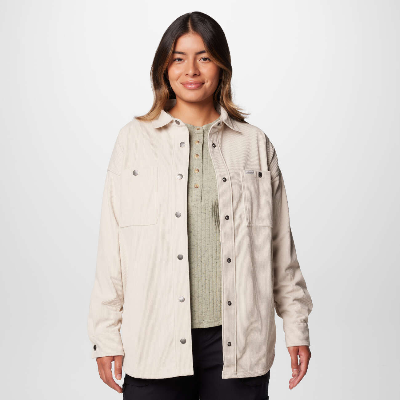 Die Columbia Blue Point Creek Corduroy Shirt Jacket für Damen verbindet Hemd-Optik mit Jackenfunktion. Das Cordmaterial sorgt für einen lässigen Look und angenehmen Tragekomfort – perfekt für Übergangszeiten. 2086021278