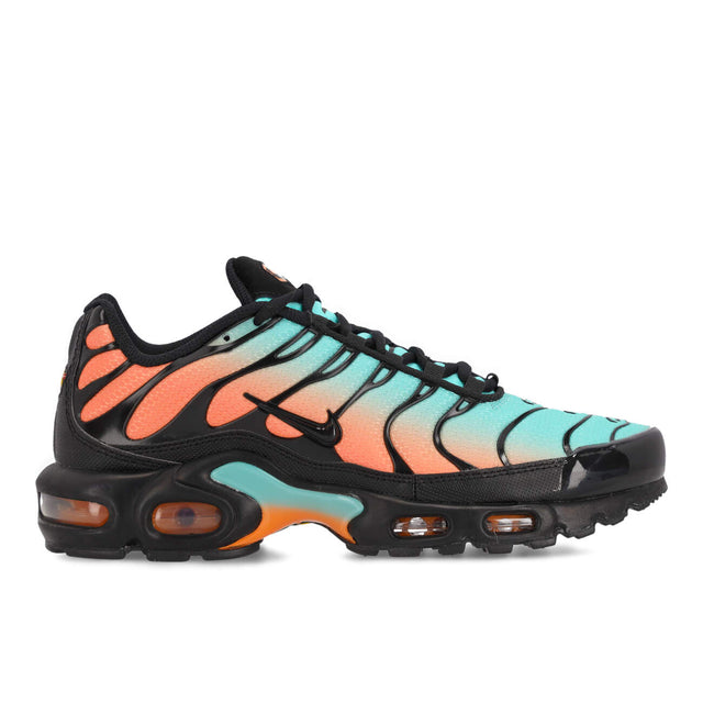 Der Nike Air Max Plus in black-black-aurora green-orange pulse bringt den ikonischen Tuned-Air-Look auf die Straße. Atmungsaktives Mesh mit synthetischen Overlays und markantem TPU-Cage sorgt für Stabilität, während die sichtbaren Air-Elemente reaktiven Komfort liefern. Ein auffälliger Colorway mit kräftigen Akzenten für dynamische Alltags- und Streetwear-Fits. DM0032-022