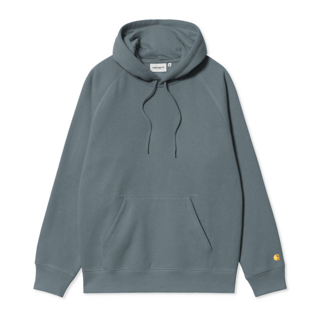 Das Carhartt WIP Hooded Chase Sweat in cozy blue-gold ist ein zeitloser Hoodie mit lockerer Passform. Die hochwertige Sweatqualität bietet angenehme Wärme, während das goldene Logo-Stitching dezent Akzente setzt. I033661.3LP.XX
